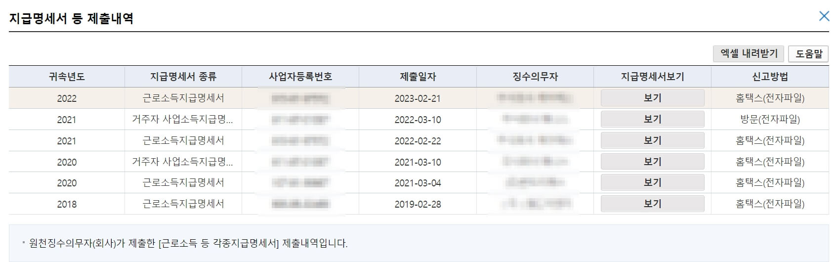 2023년도 원천징수 영수증 발급기간