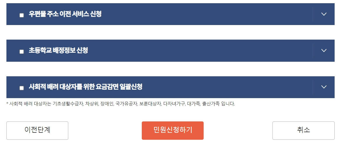 또한 온라인에서와 마찬가지로 우편물 배달 주소지 이전에 대해서 요청하면 해 줍니다.