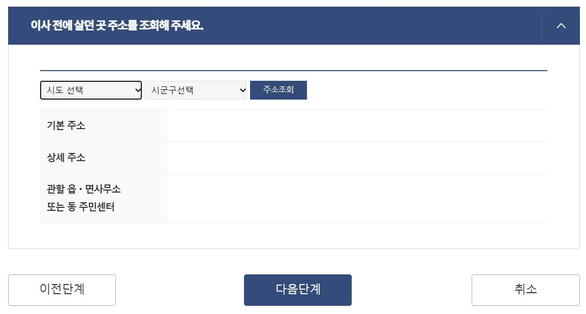 4. 이사하기 전의 주소를 입력하는 단계입니다.