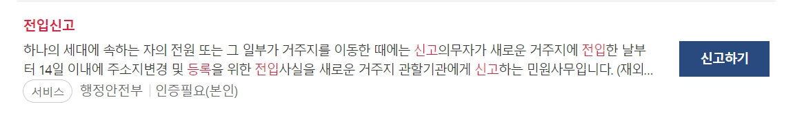 정부24를 통해 전입신고 할 수 있습니다. 인증서 로그인 필요합니다. 검색하기 전에 로그인하는 것을 추천드립니다.