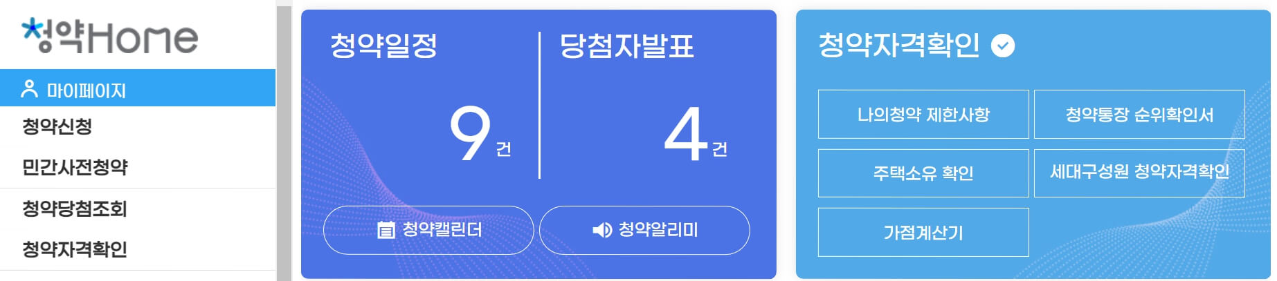 한국부동산이 운영하는 청약 홈페이지는 청약 접수, 당첨 조회, 자격 확인, 모집 공고 단지 내 청약실무, 일정, 통계등을 지원합니다.