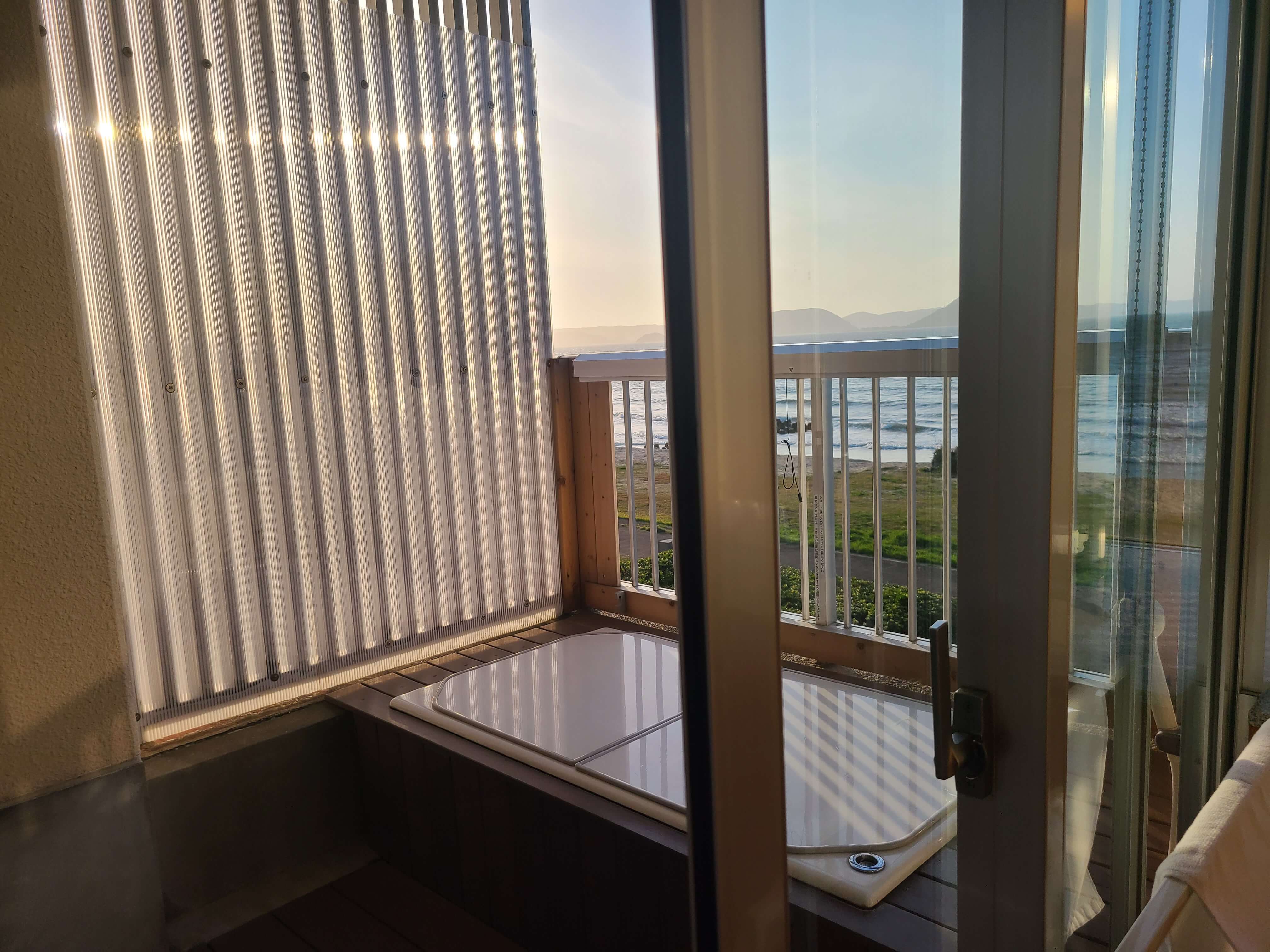 욕조가 있는 곳은 유리가 없는 노천입니다.