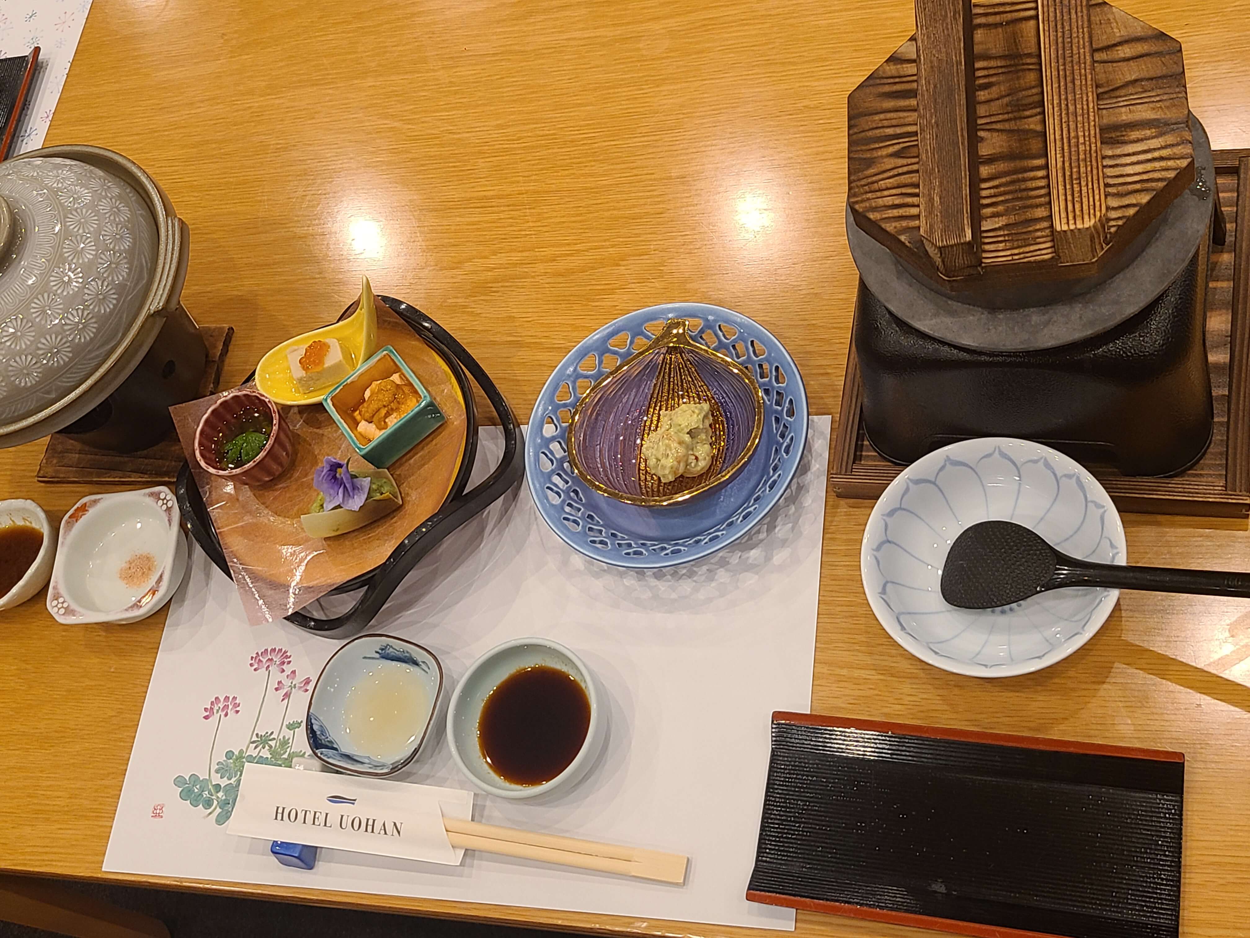 료칸 우오한은 후쿠오카 시내에서는 다소 떨어져 있지만 수영장도 있고 가이세키 정식이 아주 훌륭한 료칸입니다.