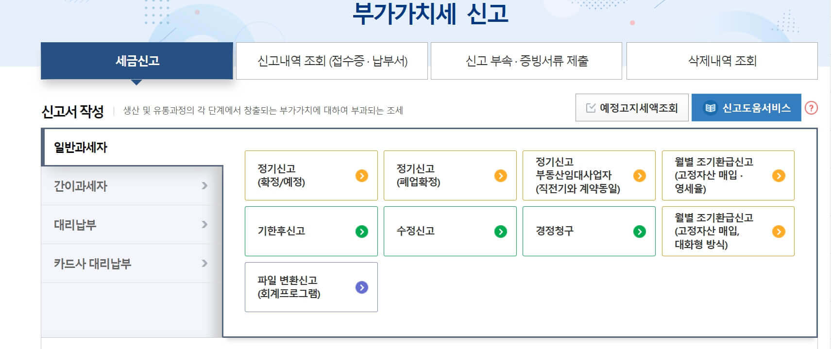 해당하는 과세유형을 선택한 후 부가세 신고를 하면 됩니다.
