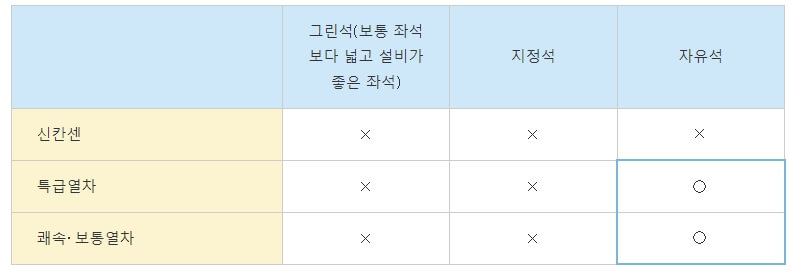 신칸센은 이용할 수 없고 JR탑승 시 자유석만 탑승이 가능합니다.