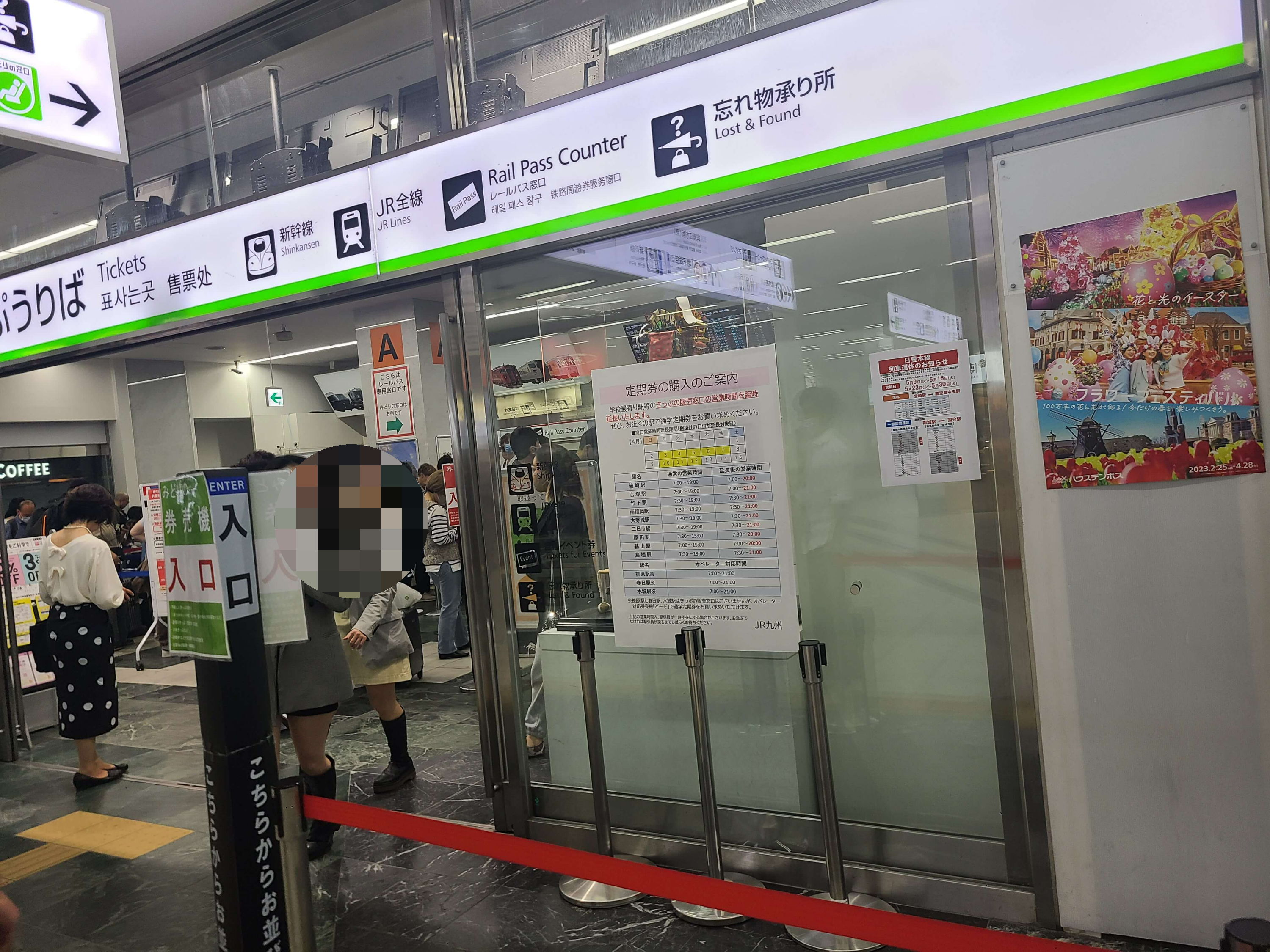 하카타역에서 JR표 사는 곳으로 가면 왼쪽줄은 외국인이고 오른쪽줄은 내국인 전용 줄입니다.